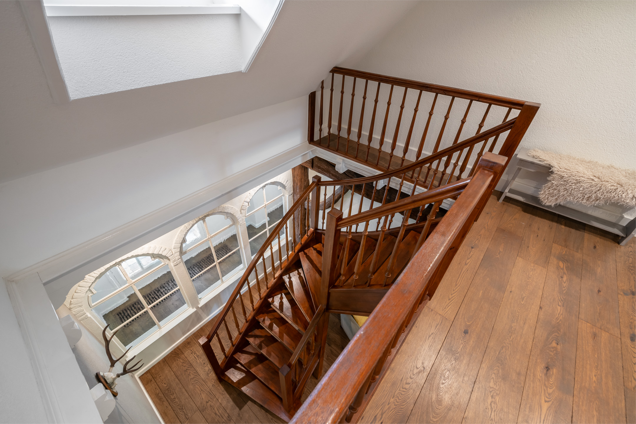 This is a home where heritage and sustainability meet. Its distinctive thatched roof, white stable windows, and original beams retain the essence of the property’s 19th-century origins, while the installation of 38 solar panels, roof insulation, and double glazing ensure it meets today’s energy standards.