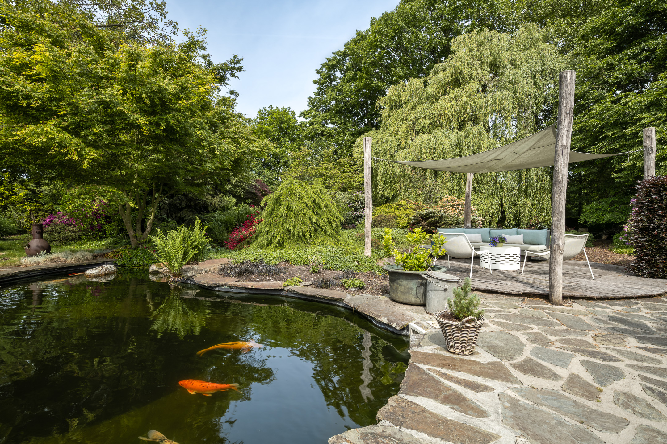 Set on approximately 1 hectare of land, the estate offers a park-like garden with mature trees, a pond, and multiple terraces. For equestrian enthusiasts, there are stables, a fully fenced paddock, and direct riding access to the Bedafse Bergen trails. Additional features include a fruit orchard, vegetable garden, natural pasture pond, animal shelter, an authentic water well, and even a converted baker’s cottage serving as a charming chicken coop.