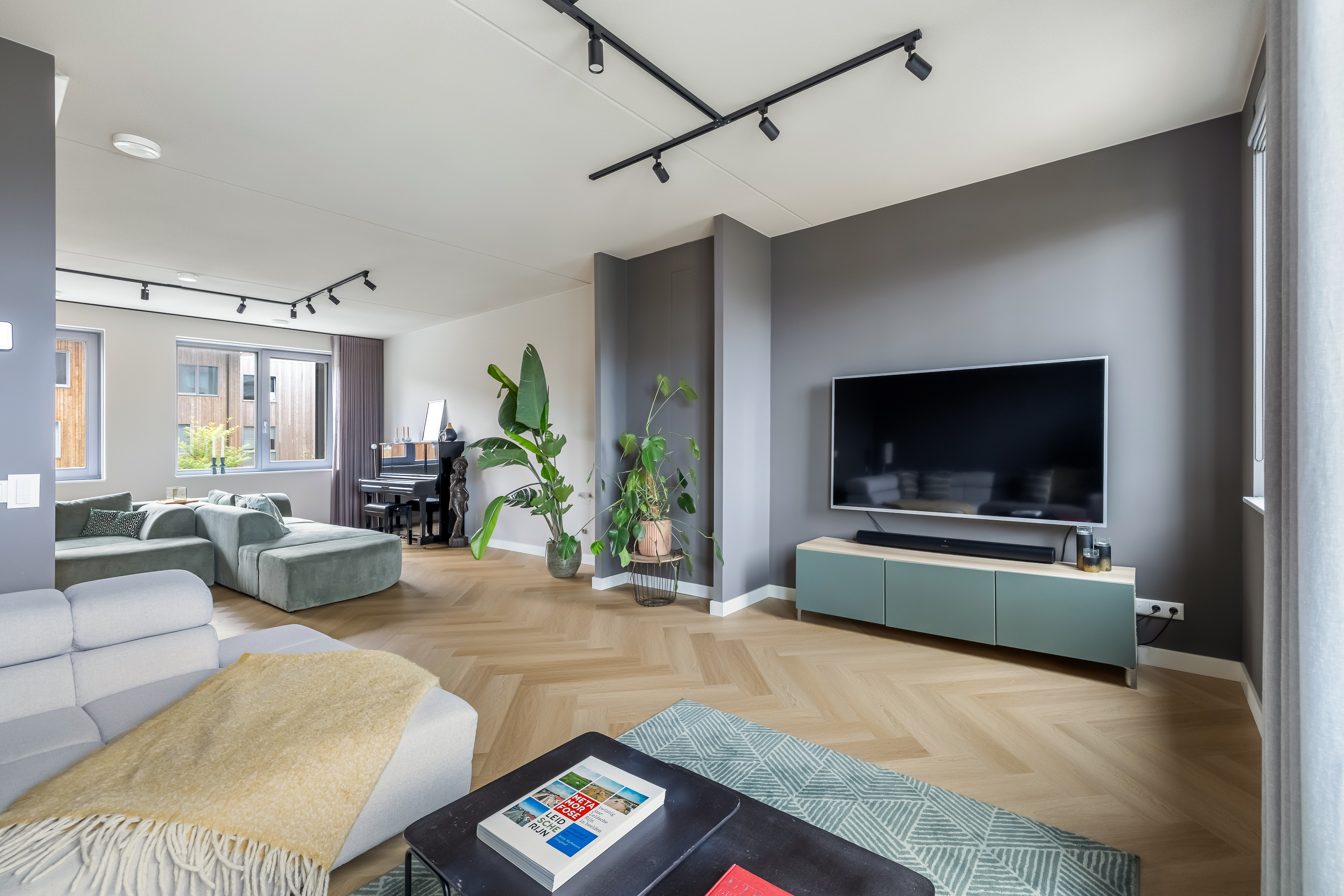 De woning is tot in detail ontworpen. Warm, luxe en eigentijds, zonder koel of afstandelijk te worden. De maatwerkkeuken is een echte leefkeuken. Kasten tot aan het plafond, mooie materialen en goede inbouwapparatuur die met wifi te bedienen is. Je zet de oven alvast aan onderweg naar huis, laat de broodjes bakken voordat je beneden komt en schuift daarna meteen aan om samen te eten. Alles is strak uitgelijnd, nergens standaard, alles klopt. Dit is een huis voor mensen die oog hebben voor detail.