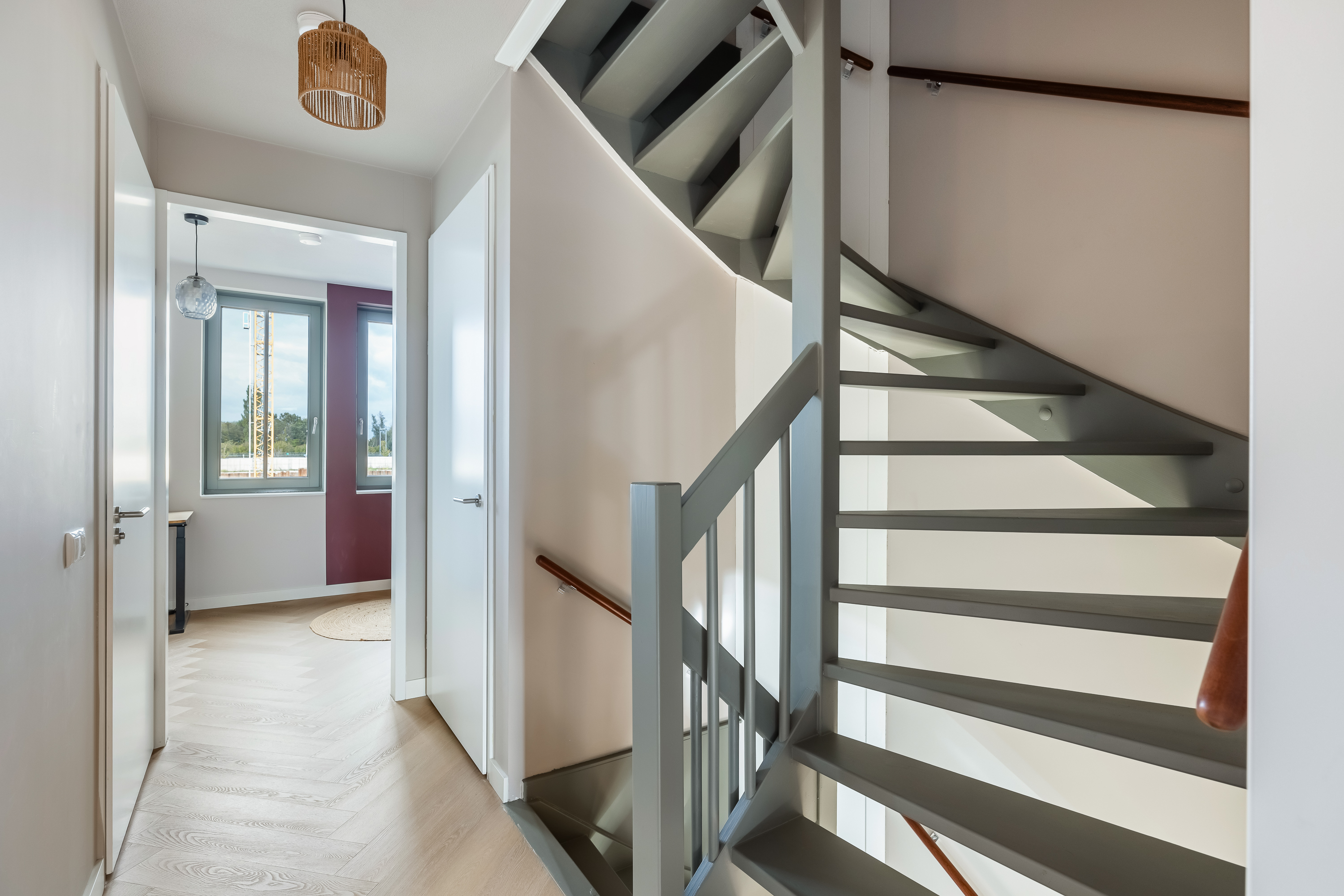 De leefverdieping voelt ruim en huiselijk tegelijk. Je kunt hier samen zijn zonder elkaar steeds te kruisen. Het kookeiland vormt het middelpunt, de eettafel sluit er logisch op aan en de voorkamer is in verbinding en toch ook niet. Als je binnenkomt begrijp je wat we bedoelen. Op de eerste verdieping herhaalt dat gevoel zich. Een fijne zitkamer waar kinderen kunnen spelen, waar je een boek leest of even tv kijkt. Je zit hier trouwens heerlijk in het zonnetje. Ook hier zijn de ruimtes multifunctioneel en flexibel. Er is zelfs een aansluiting voor een wastafel, mocht je hier ooit een pantry willen creëren.