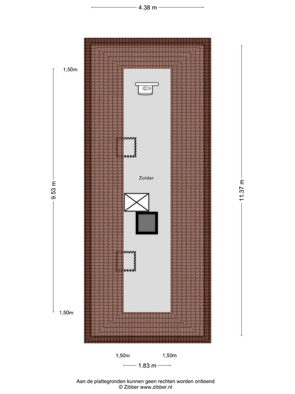 A loft ladder leads to the attic level: a generous storage attic with standing height in the middle, twin roof windows, and plenty of storage options.
