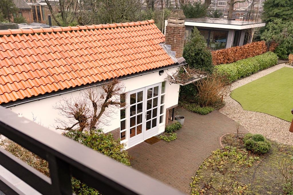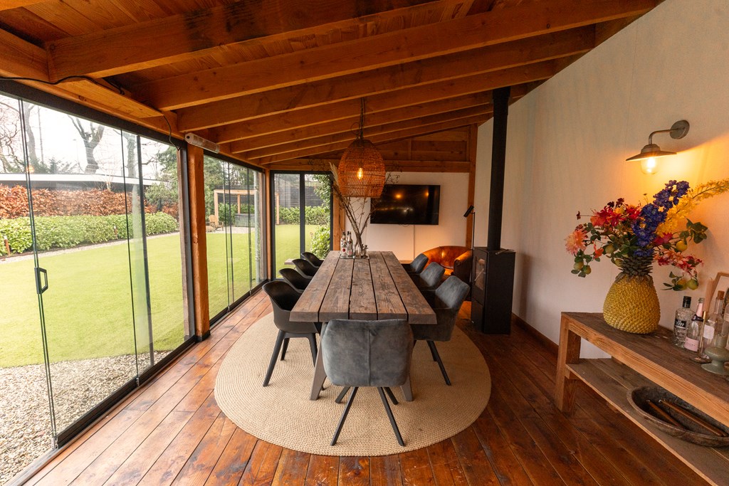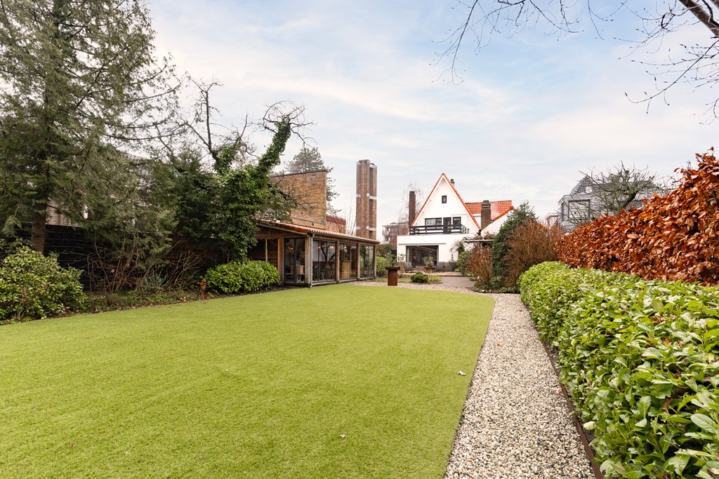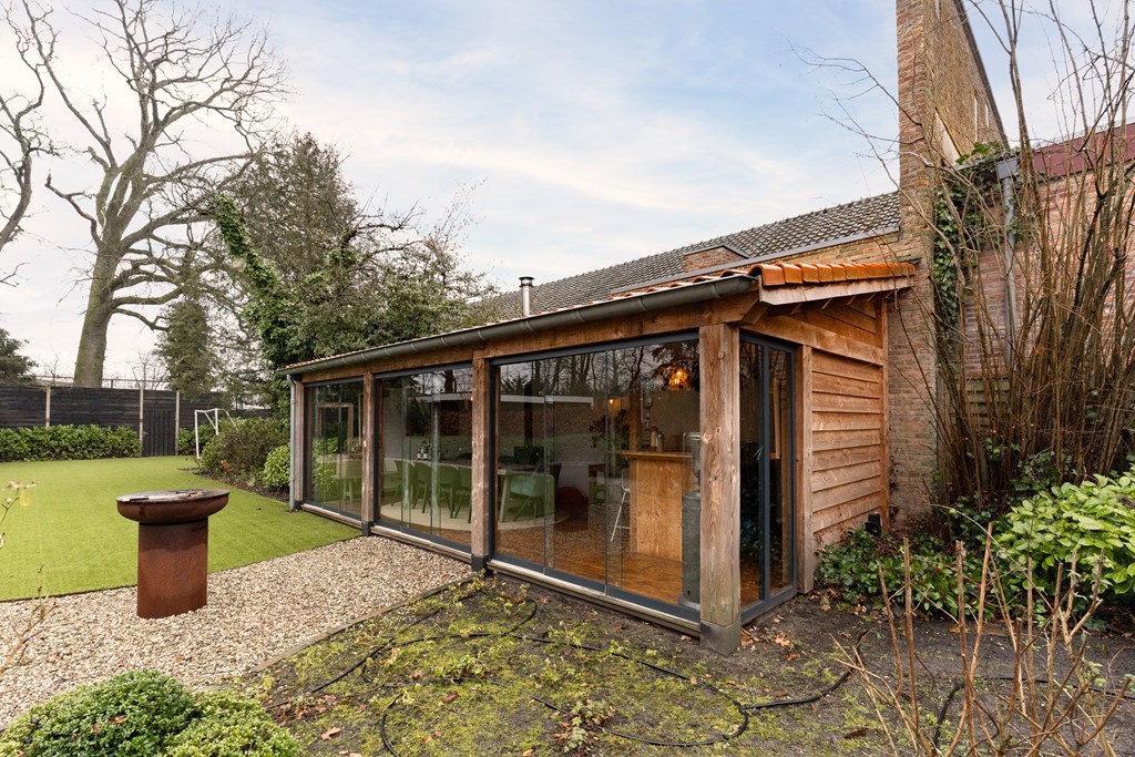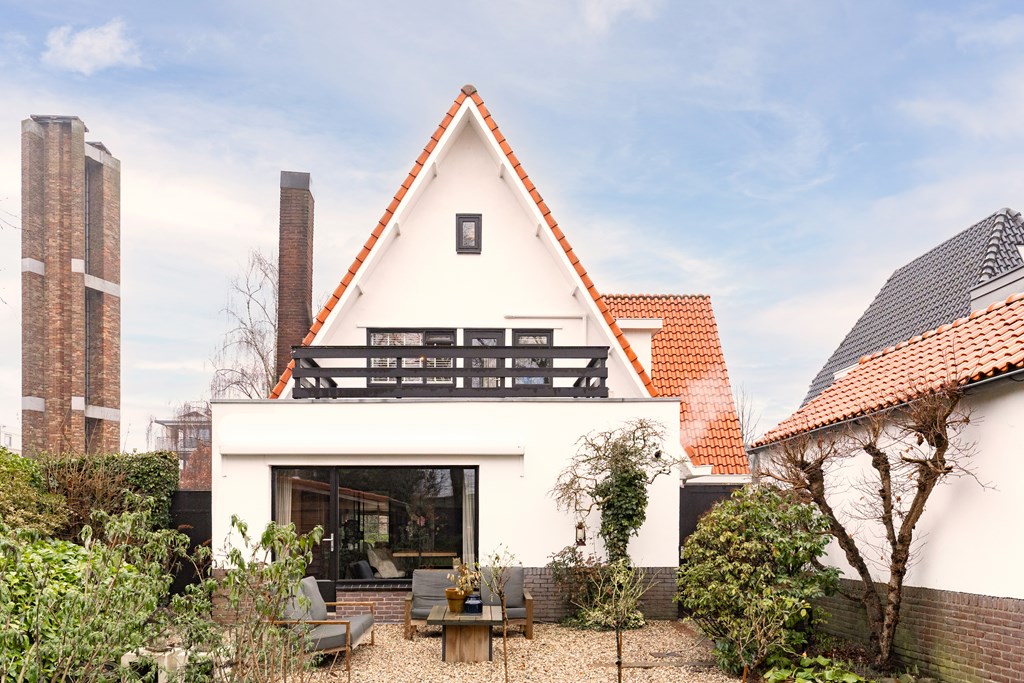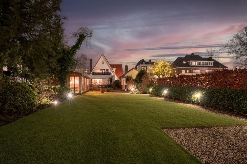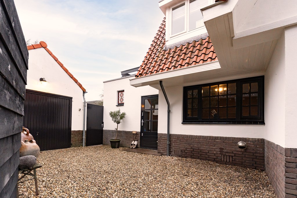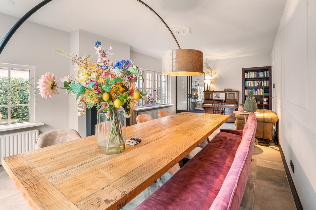 Villa Veenendaal stands as a testament to thoughtful restoration and bespoke craftsmanship. This 1937 villa, 'Domus Paterna', is gracefully set along Kerkewijk, offering 160 m² of living space and a generous plot of 1,043 m². The property exudes authenticity, with features such as a vestibule, original glass-in-lead, a living room en-suite, and a staircase with a landing. Expanses of light and classic finishes define each room, while a modern veranda with wood stove and bar overlooks lush, landscaped gardens for privacy and outdoor enjoyment.
