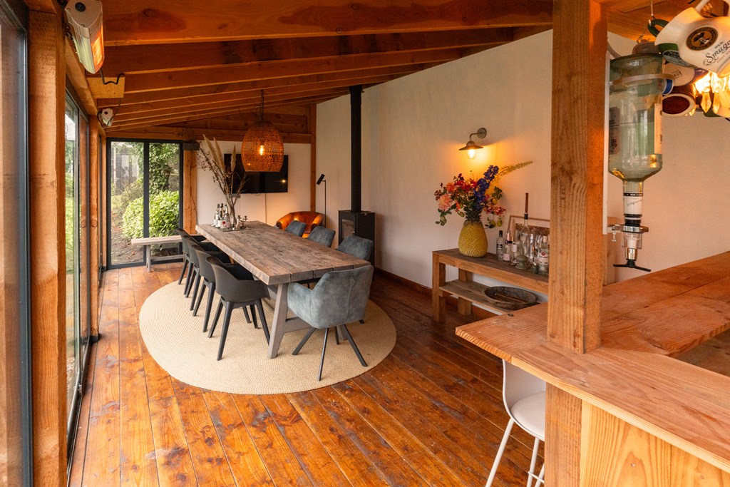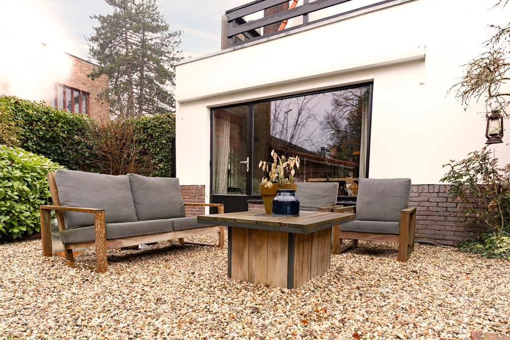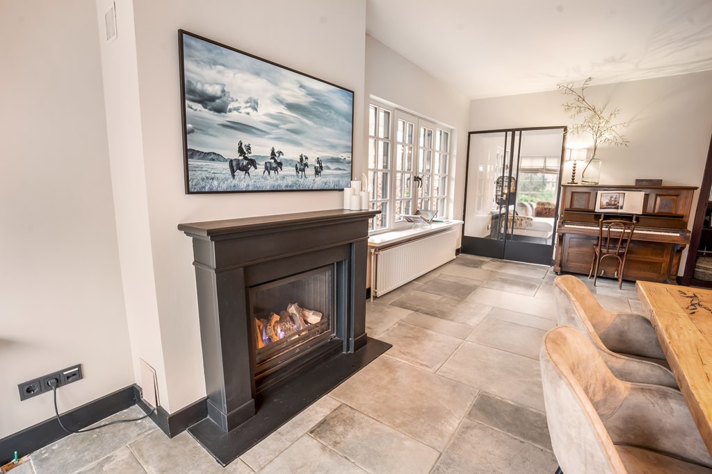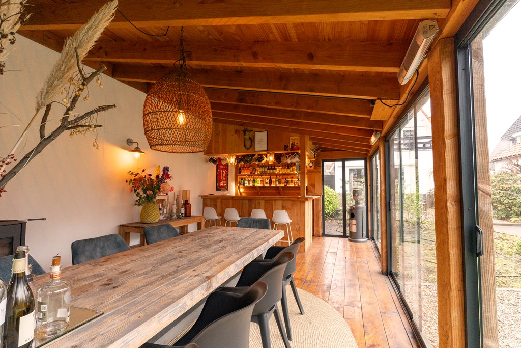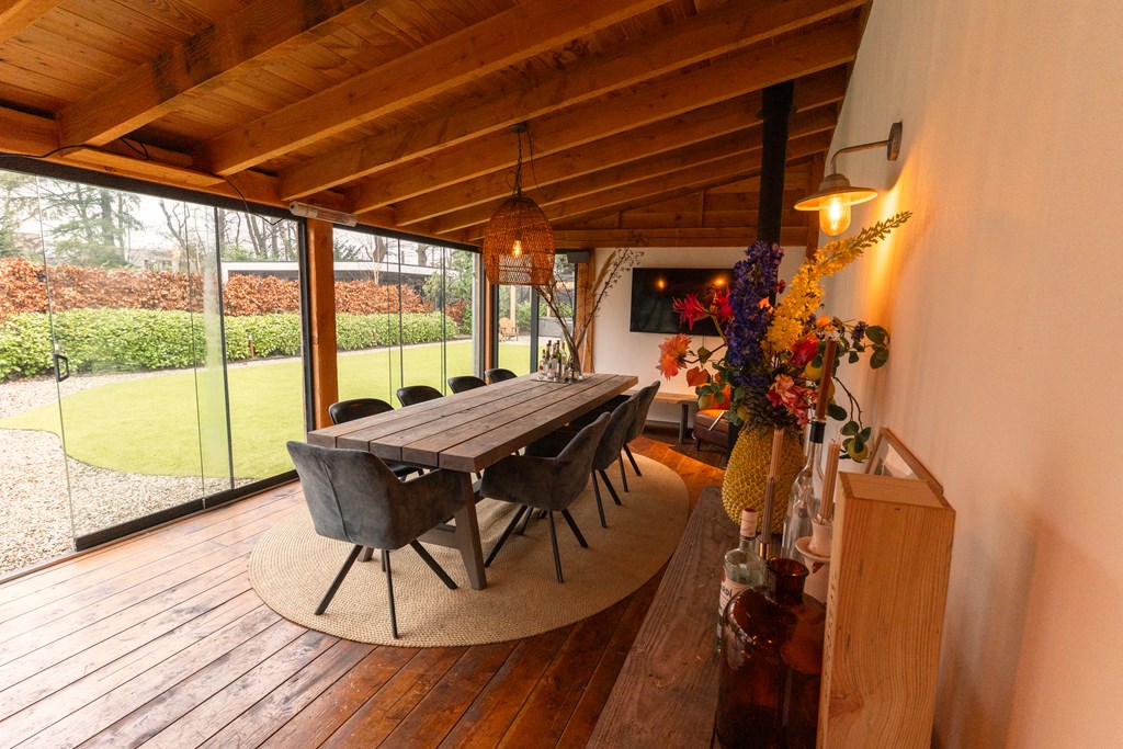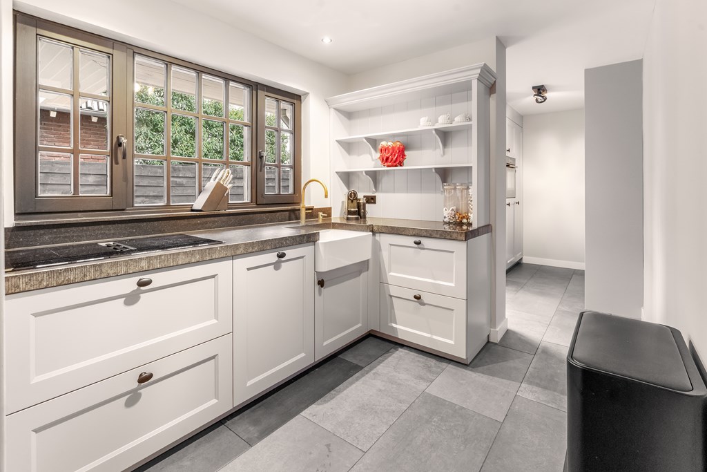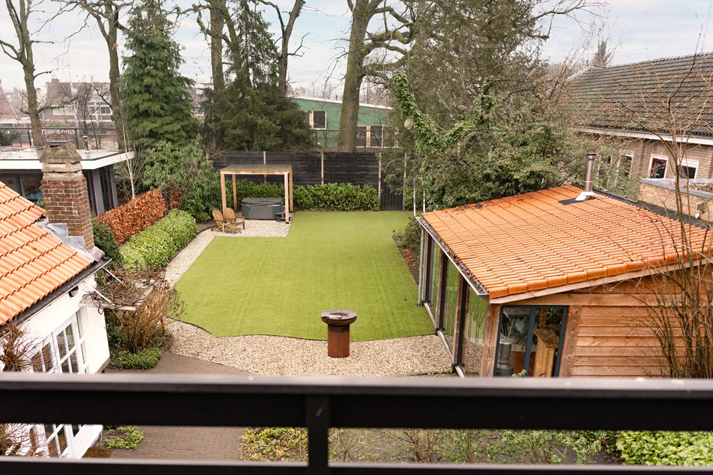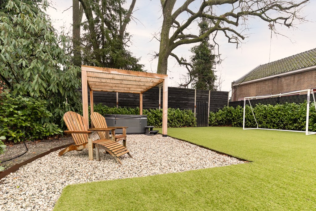 Villa Veenendaal stands as a testament to thoughtful restoration and bespoke craftsmanship. This 1937 villa, 'Domus Paterna', is gracefully set along Kerkewijk, offering 160 m² of living space and a generous plot of 1,043 m². The property exudes authenticity, with features such as a vestibule, original glass-in-lead, a living room en-suite, and a staircase with a landing. Expanses of light and classic finishes define each room, while a modern veranda with wood stove and bar overlooks lush, landscaped gardens for privacy and outdoor enjoyment.