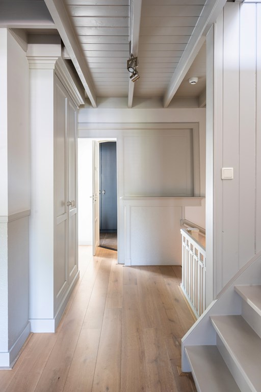 U komt binnen in de entree en hal, welke beiden voorzien zijn van een authentieke granito vloer. Via de entree en hal, toilet en trapopgang betreedt u de ruime woonkamer. De grote raampartijen zorgen voor veel lichtinval. De stijlvolle gashaard vormt een echte eyecatcher en creëert een luxe, behaaglijke sfeer.