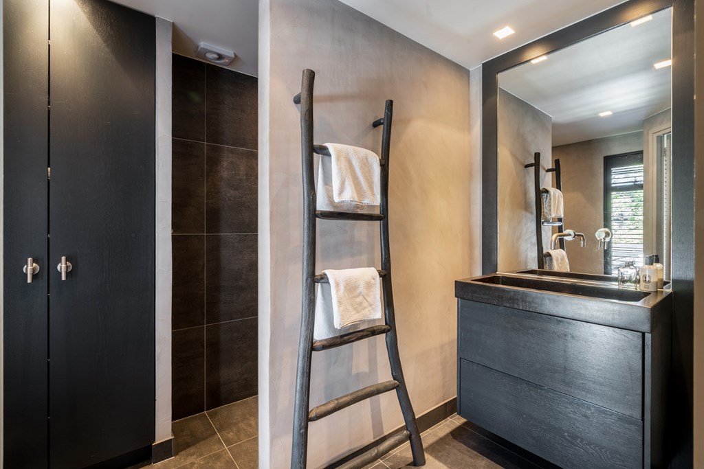 Op de eerste verdieping bevinden zich, grenzend aan de ruime overloop, drie volwaardige slaapkamers en een nette badkamer met inloopdouche, zwevend toilet, badmeubel en inbouwkast. De kamers zijn licht, ruim en praktisch in te delen. Diverse inbouwkasten zorgen voor extra opbergruimte. Ook deze verdieping beschikt over een airconditioning, die de gehele etage kan koelen of verwarmen.