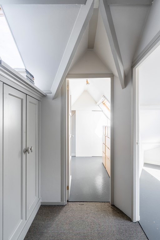 De tweede verdieping telt eveneens drie slaapkamers, allen voorzien van dakramen of dakkapellen, waardoor er veel daglicht binnenkomt. De beschikbare ruimte is efficiënt benut met slimme bergruimtes en een praktische indeling.