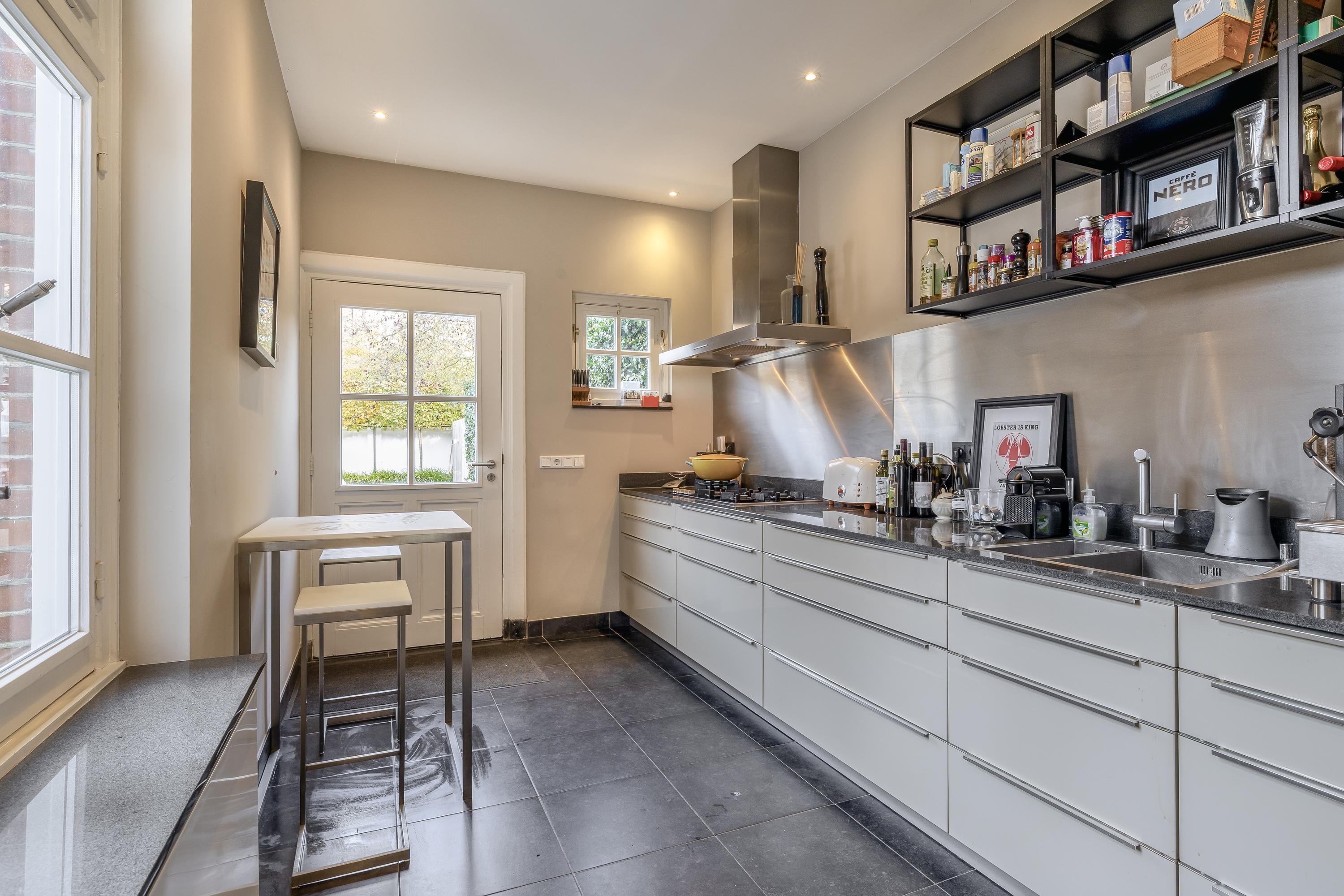 The main living level enjoys unobstructed views of the Rosarium, enhanced by high ceilings with original ornamentation, a gas fireplace, and seamlessly integrated technology including air conditioning and dimmable lighting. French doors at the rear invite you to the architect-designed garden, a private sanctuary with multiple terraces, Padauk wood decking, paved patio, and a heated swimming pool, all surrounded by walls for complete seclusion just minutes from Venlo’s centre.