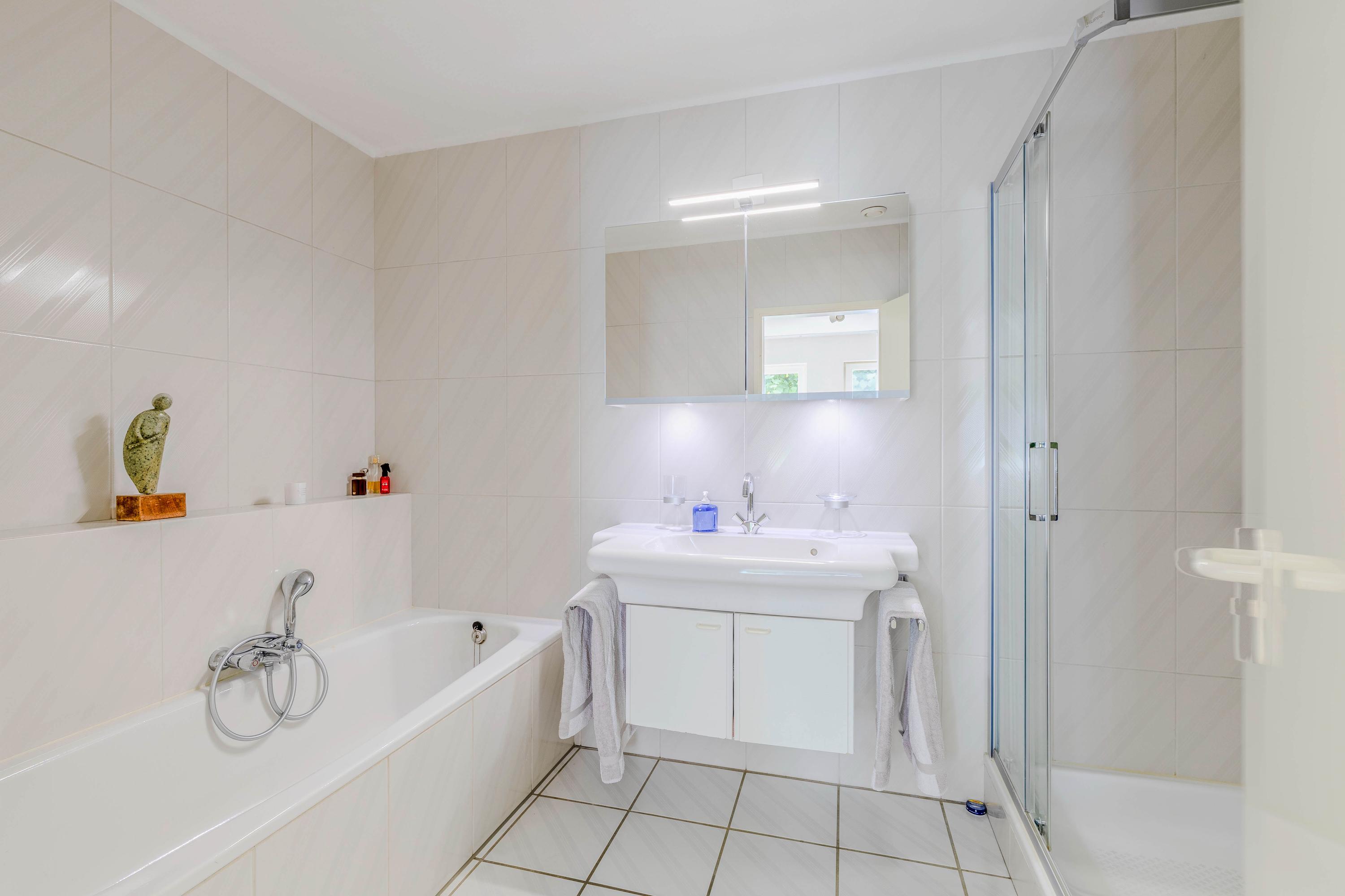 One of the bedrooms offers access to an additional room, ideal for conversion into a sauna or wellness area. Another bedroom provides access to a balcony.