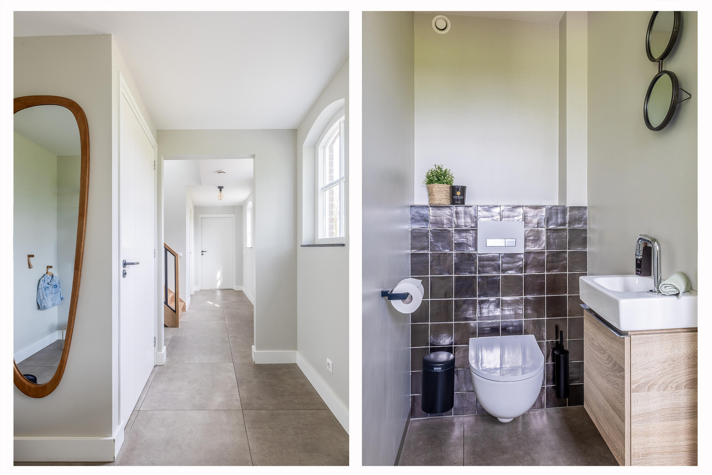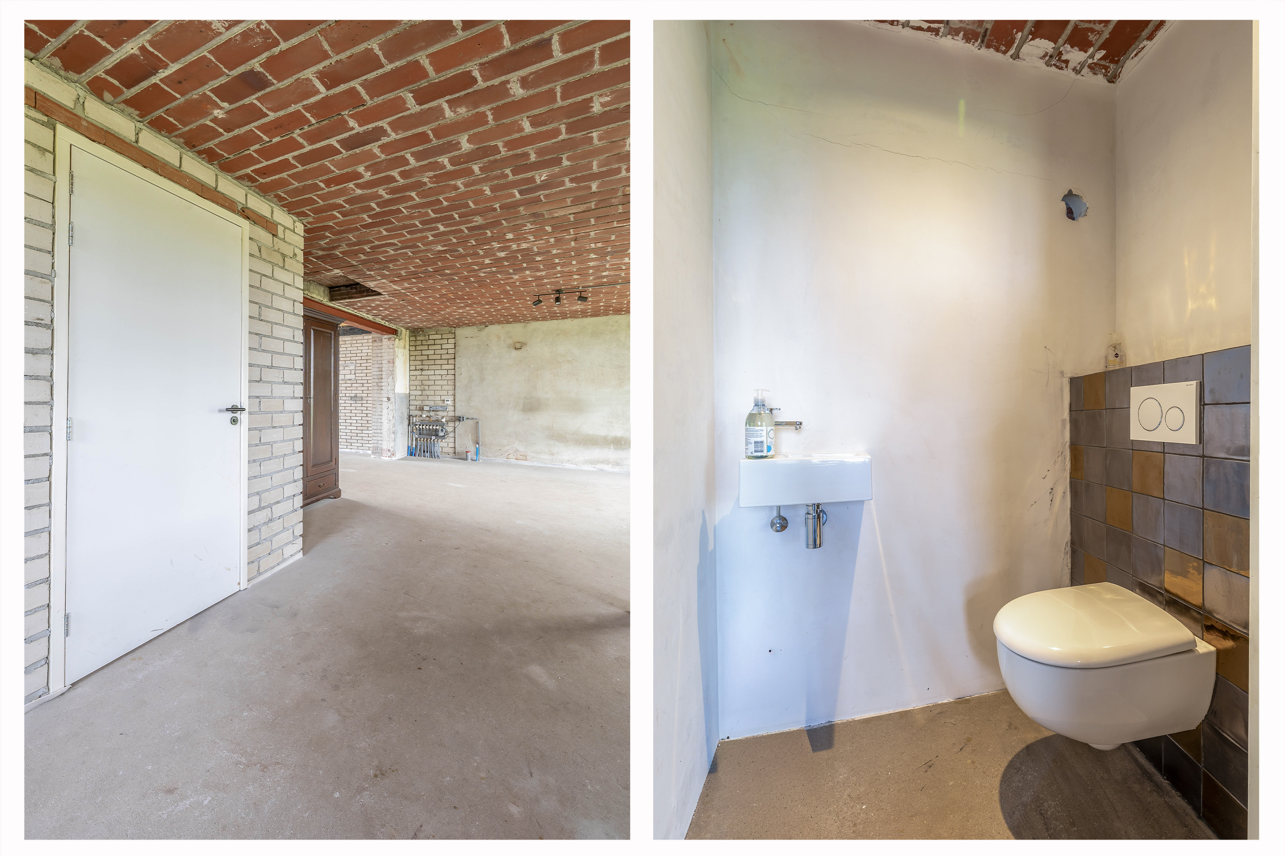 Adjacent to this is the indoor rear annex which, alongside the indoor garage, offers a considerable amount of additional usable space. This forms a solid foundation and was designed with versatility in mind. The rear annex is therefore ideally suited to a variety of uses, such as independent living accommodation (informal care), an office or practice space with meeting facilities, or a comfortable guest house. The space features a refurbished concrete floor with underfloor heating, brick walls and exposed wooden beams that enhance the rustic atmosphere. Part of the space has a mezzanine, and there is plenty of natural light. French doors in the rear façade provide a direct connection to the garden. There is also a separate toilet with a wall-hung toilet and washbasin. The rear annex also provides access to the built-in garage. The garage is accessible from the courtyard via a wide entrance door.
