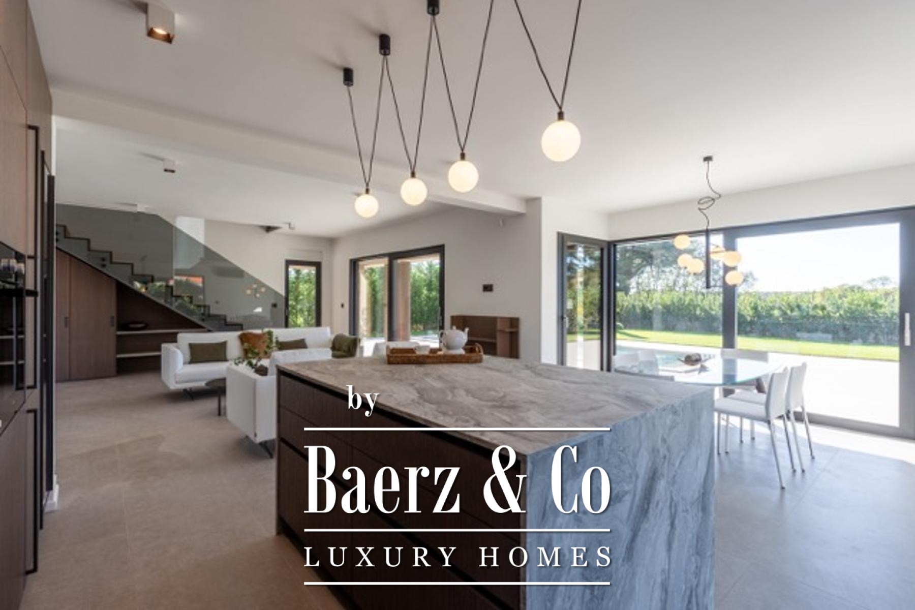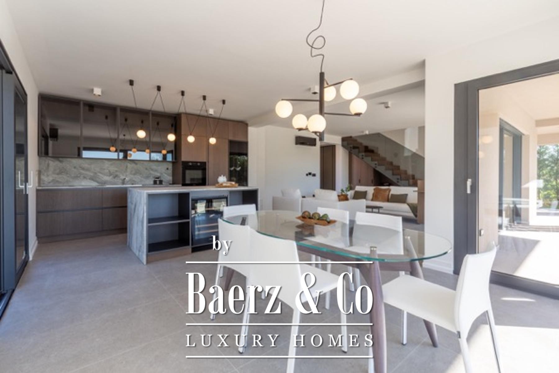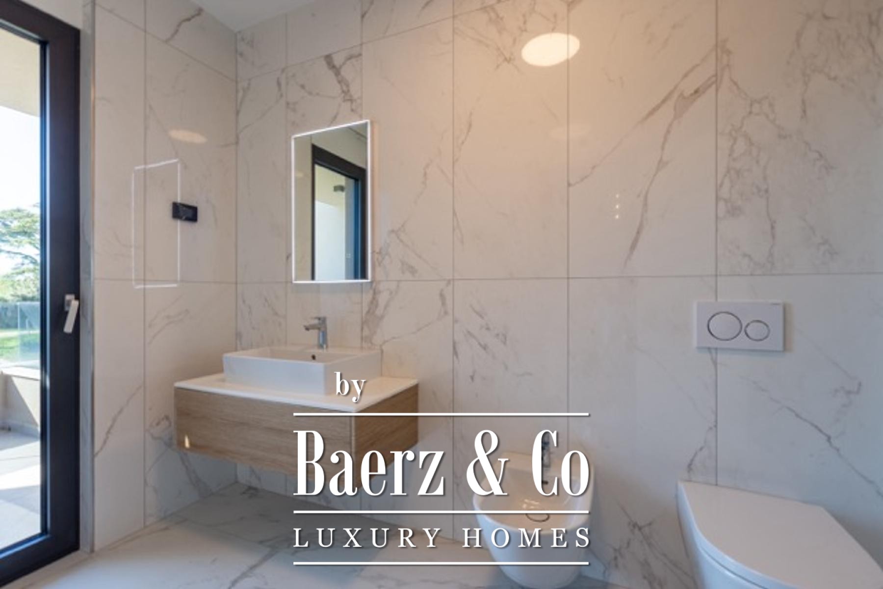 The villa’s technical features echo its emphasis on comfort and efficiency: underfloor heating via a heat pump system, air conditioning, triple-glazed aluminium windows with electric blinds and mosquito nets, a dedicated video surveillance system, and a 13.5 kW rooftop solar power plant ensuring energy self-sufficiency. The outdoor summer kitchen and designer touches invite relaxed gatherings, while a technical room with a water filtration system adds further convenience.