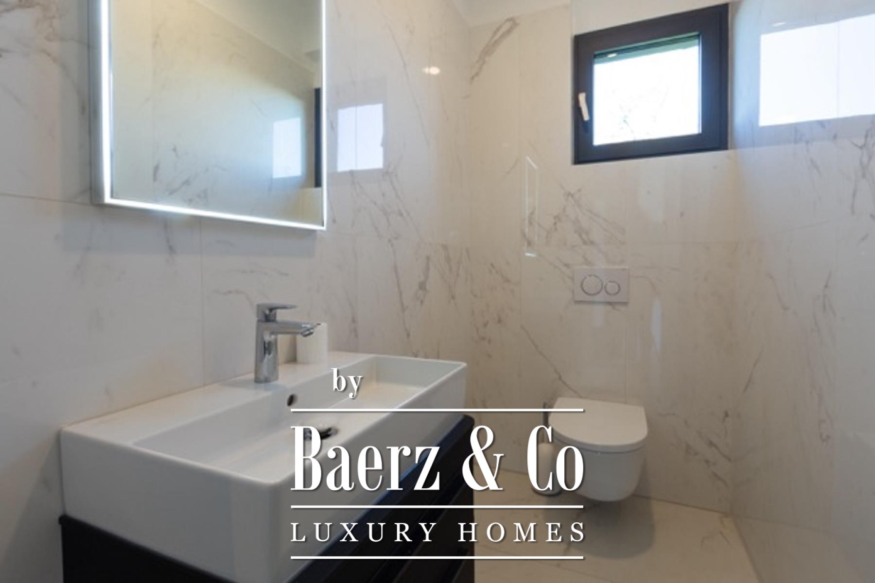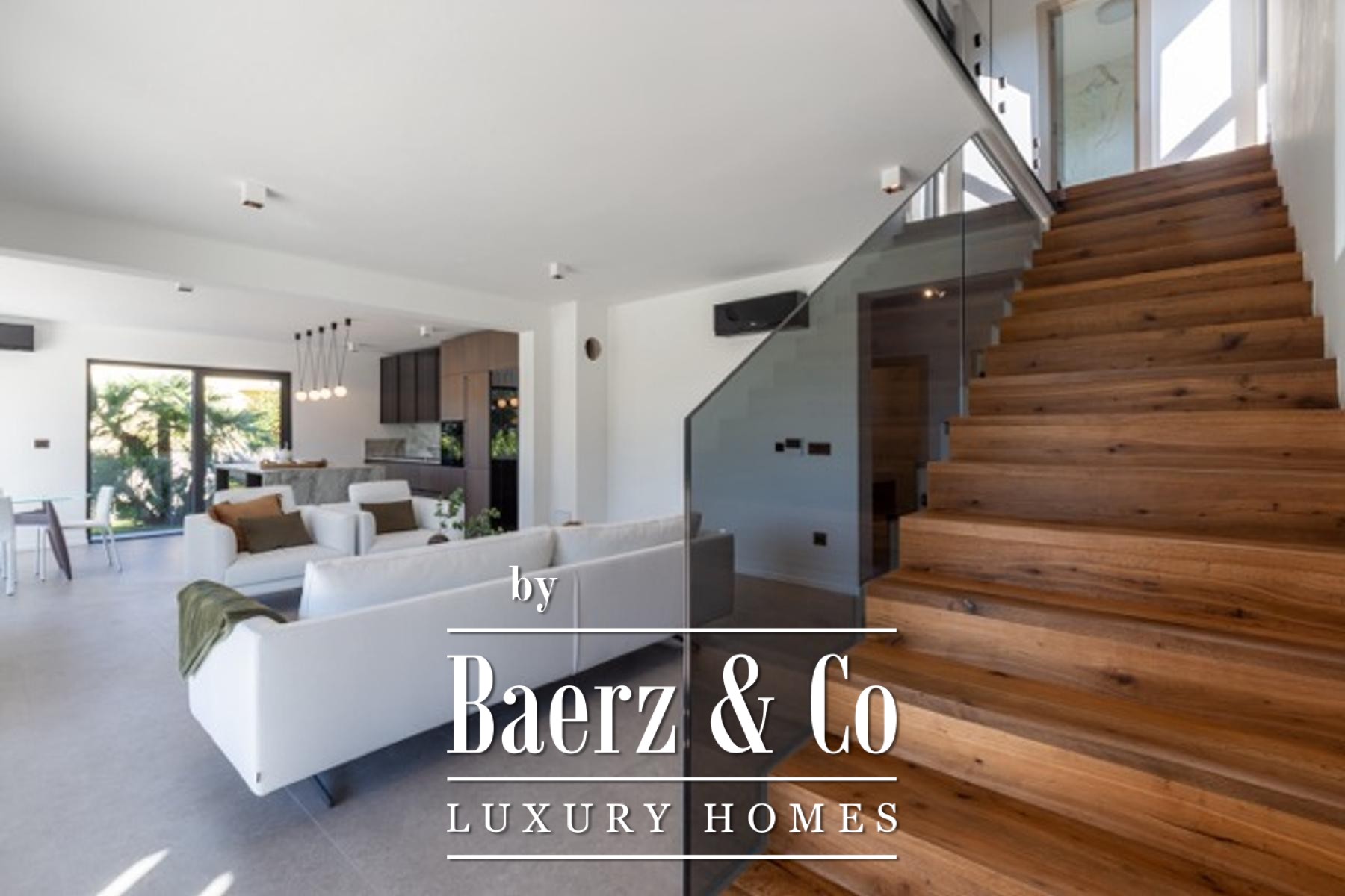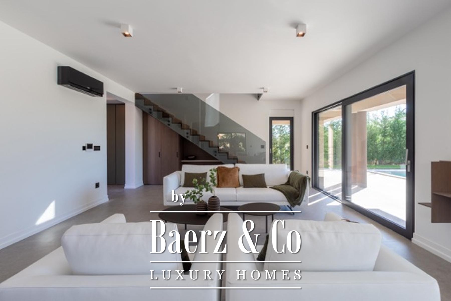 The villa’s technical features echo its emphasis on comfort and efficiency: underfloor heating via a heat pump system, air conditioning, triple-glazed aluminium windows with electric blinds and mosquito nets, a dedicated video surveillance system, and a 13.5 kW rooftop solar power plant ensuring energy self-sufficiency. The outdoor summer kitchen and designer touches invite relaxed gatherings, while a technical room with a water filtration system adds further convenience.