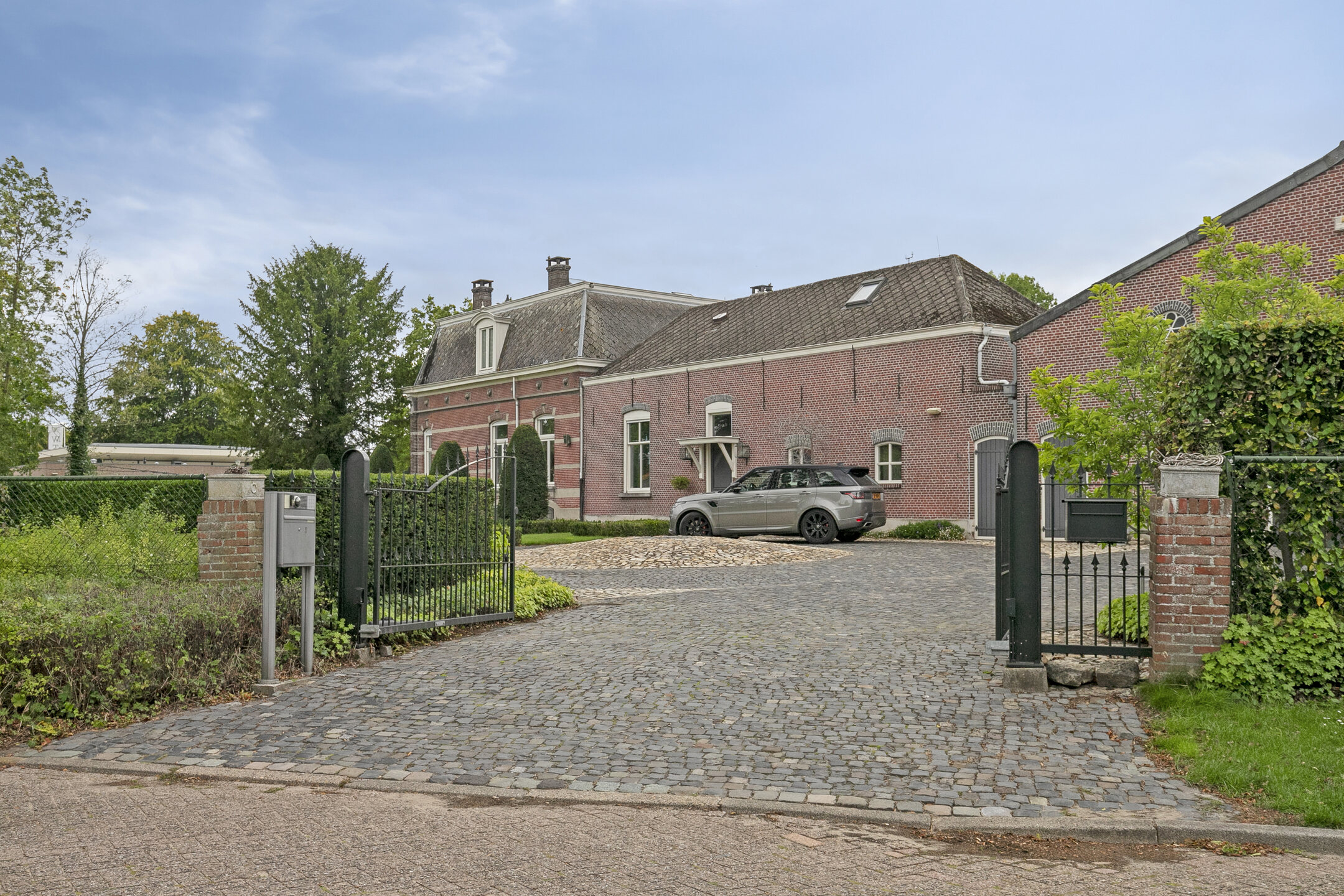 rondom afgezet met een hekwerk en voorzien van een dubbele op afstand bedienbare sierhekwerkpoort met een videofoon.