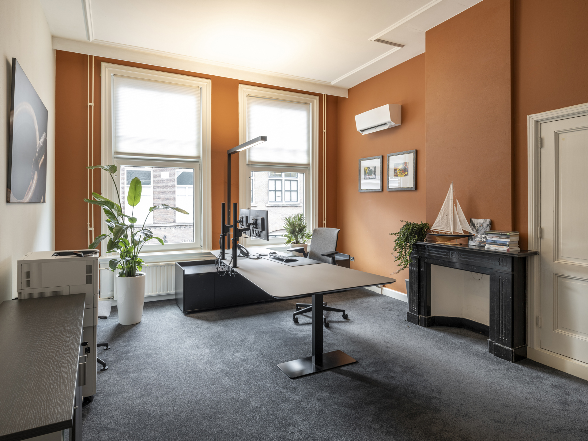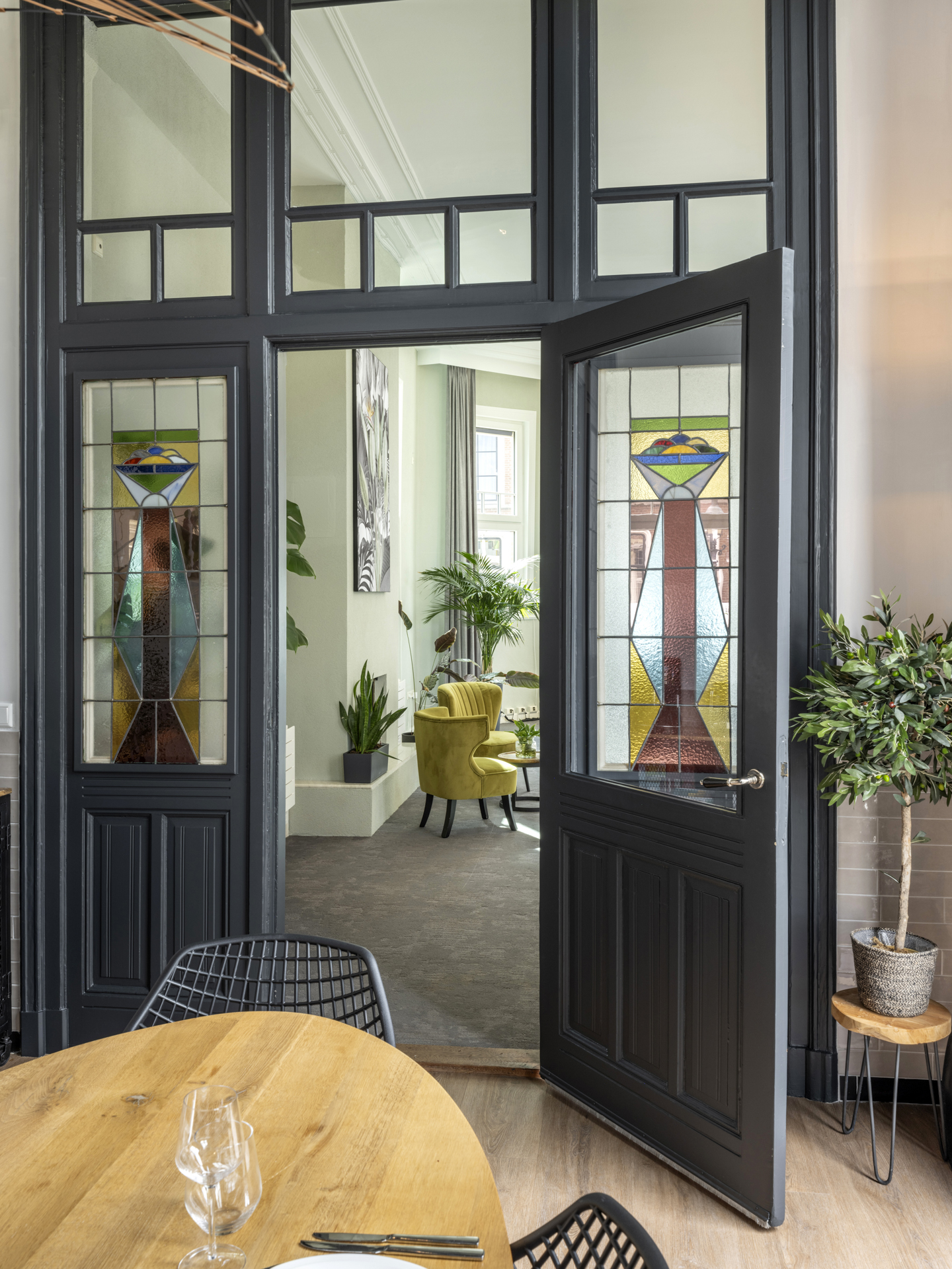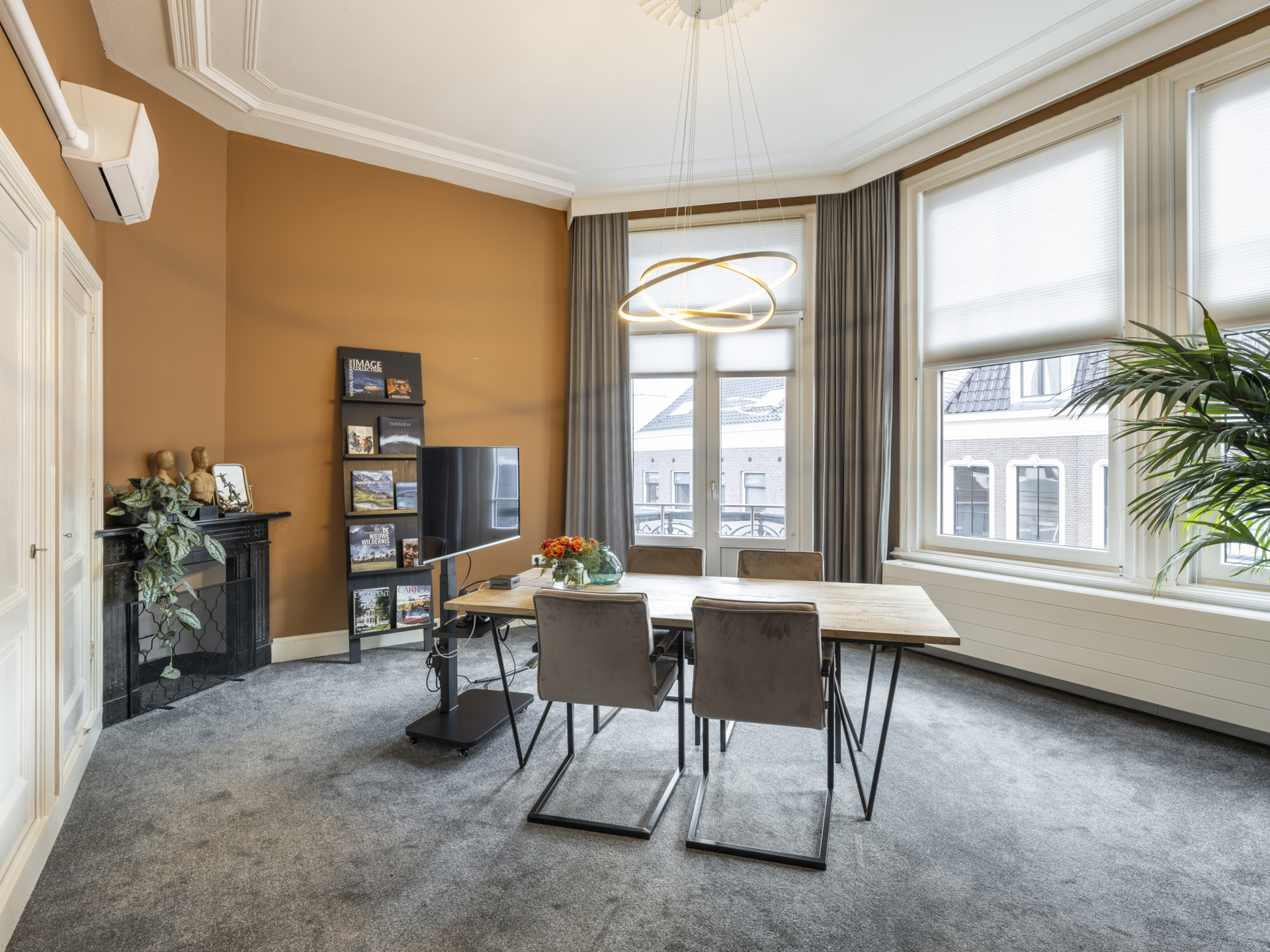 Period elements such as an original hardstone staircase, marble floors, intricate plasterwork, and leaded glass appear throughout. The flow of the home is anchored by a dramatic central hallway, with distinct living and working rooms branching off. Carefully updated, the villa marries heritage with modern comfort: high-grade insulation, HR++ double glazing, 23 solar panels, and three heating systems.