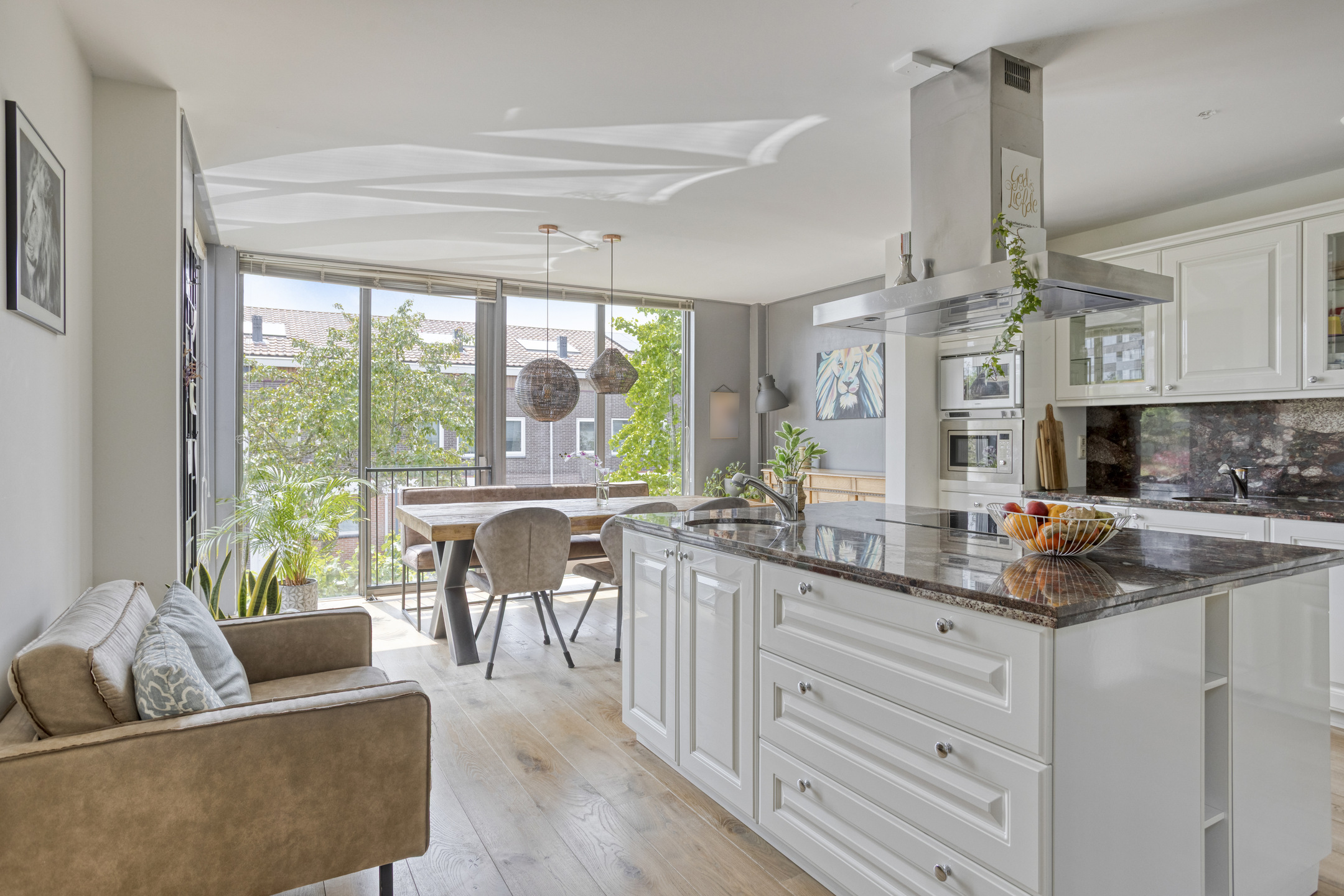 The living spaces are generously proportioned and filled with natural light thanks to large windows. Each residence has its own living room with views of the greenery surrounding the house. The kitchens are practically designed and connect well with the living areas. In total there are three modern bathrooms, and thanks to the distribution over four living levels there is always a quiet place to be found. The bedrooms are spread across all floors, offering space for large beds, desks and wardrobes. The current owners have maintained the property very well; the finish is sleek and contemporary. Thanks to HR++ glazing, aluminium window frames, roof, wall and floor insulation, and 12 solar panels, this home is also energy efficient (energy label A).